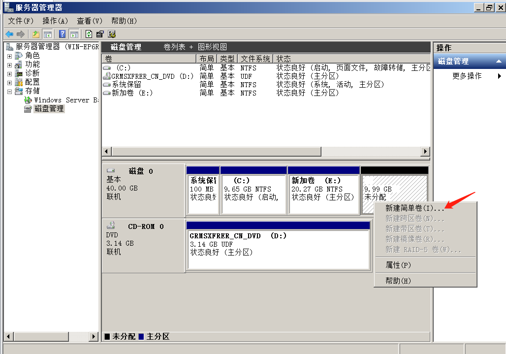 win2008系统服务器磁盘挂载教程